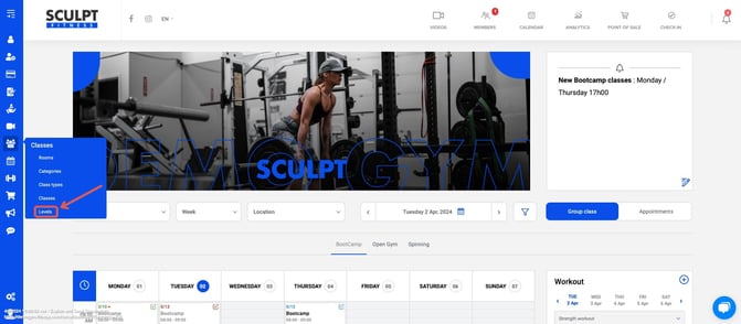 3 - The type of class (Open gym, Kid's Cross Fit, Hot Yoga, etc.)