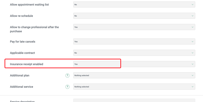 - In the "Service" tab of the general menu, when you create your service, do not forget to activate the "Insurance receipt" field which must be yes.