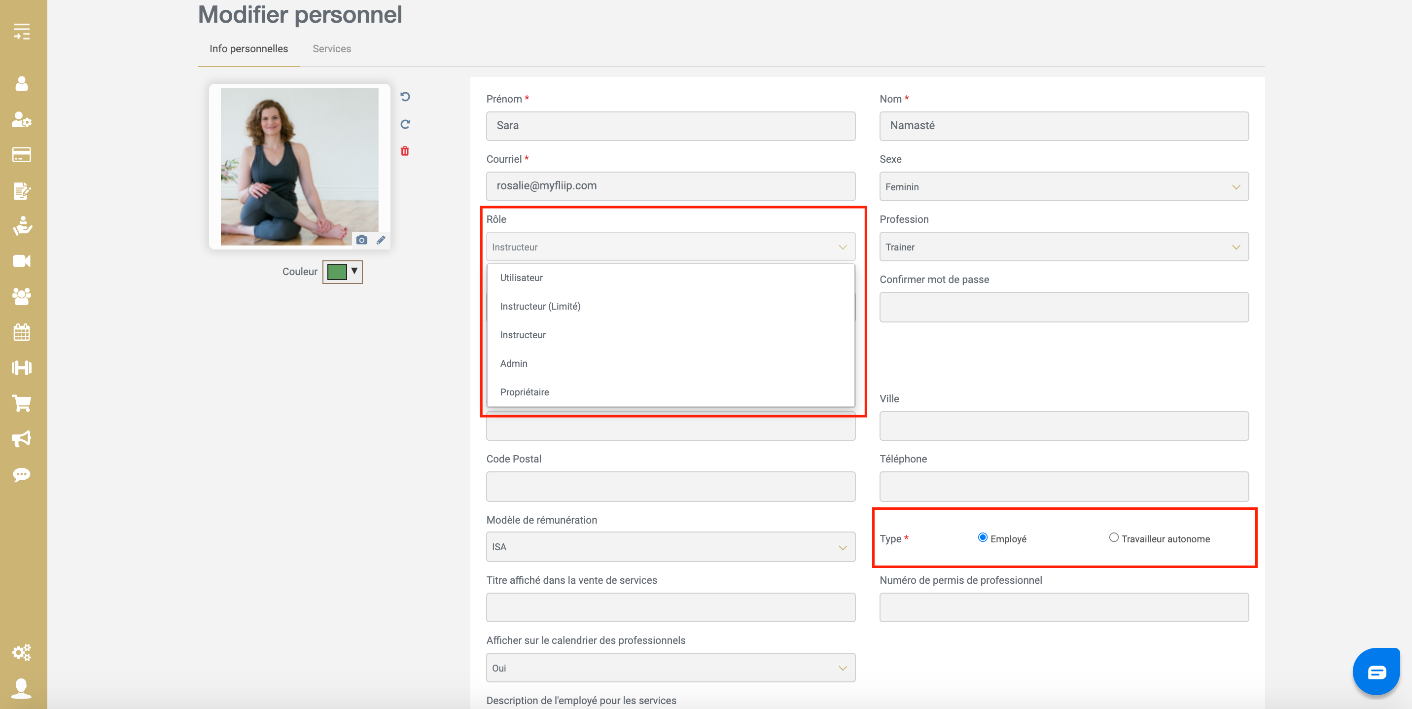 Le rôle que vous indiquerez dans le profil de votre employé est très important. Ce rôle définira les accès et les options disponibles pour cet employé dans l'application FLiiP.