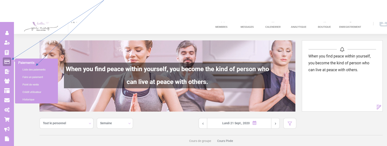 C'est dans le menu «Liste de paiements» que vous retrouverez tous les paiements qui ont eu lieu dans le système.