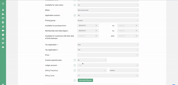By selecting yes, you will then be able to configure personalized payments. With this option you can offer a membership payable more quickly despite the future end date.