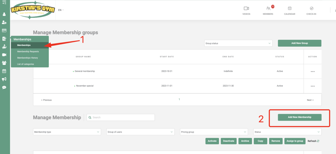 Firstly, here are all the different types of memberships that are possible to be created in your platform. You will find them in Menu> Memberships > Add new membership.