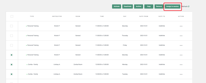 b. Once the schedule has been created, select all the classes and click on the "Assign to session" button