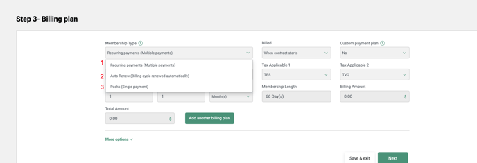 The type of membership will have an impact on the member's billing, for example the class card type will be a one-time payment for this session.