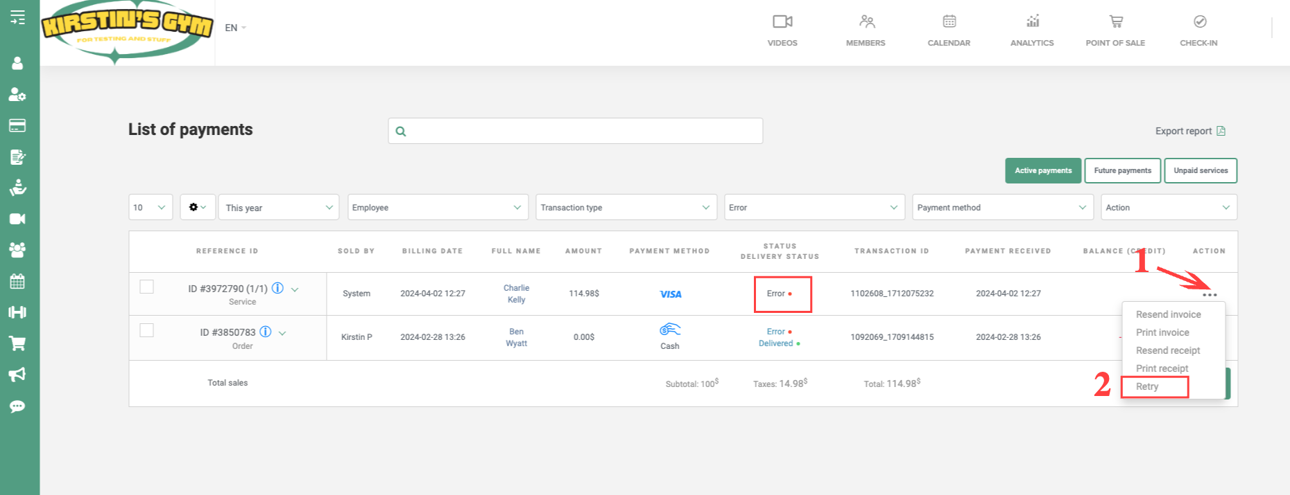 You can then sort your transactions with the "Error" filter. You will be able to see the transactions in error only:
