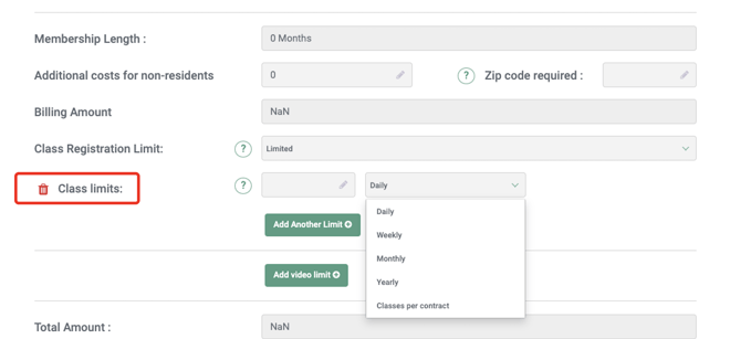 Each of the recurring type memberships has a possible limit to be established, including a class limit per membership.