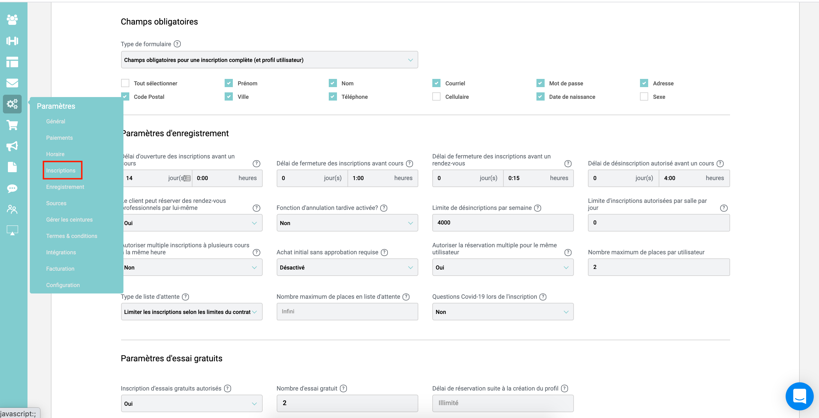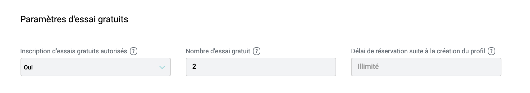 It is possible to deactivate free trials, change the number of trials or set an expiration date after creating the free trial profile. Everything is accessible in the "Settings"> "Registrations" tab: