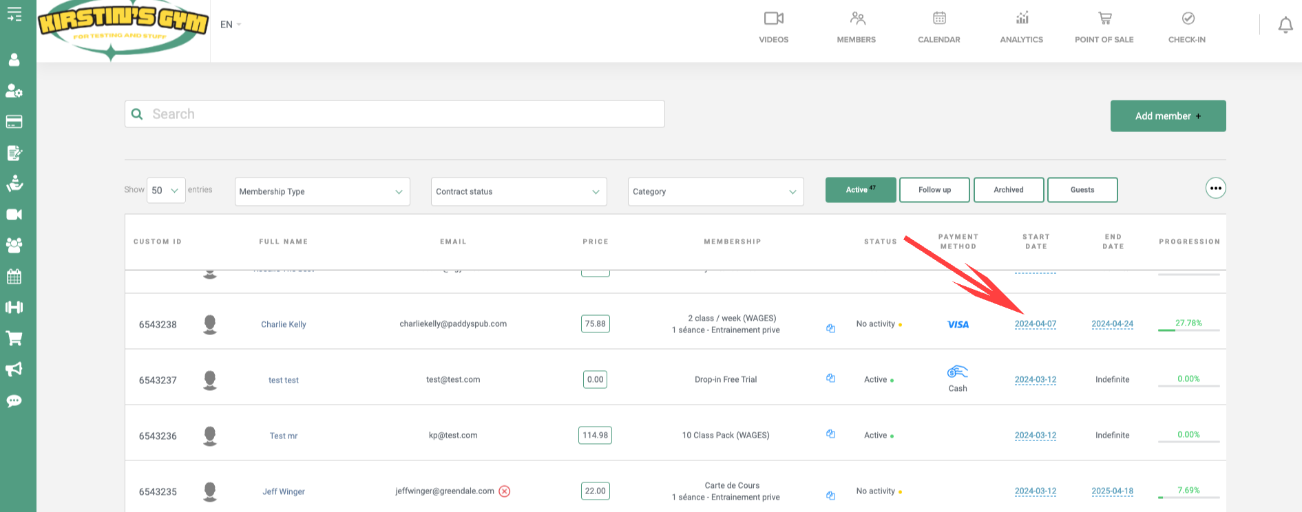 For example, if you have a membership with monthly billing, if you assign the membership on the 12th, every 12th of the month a debit will be made.