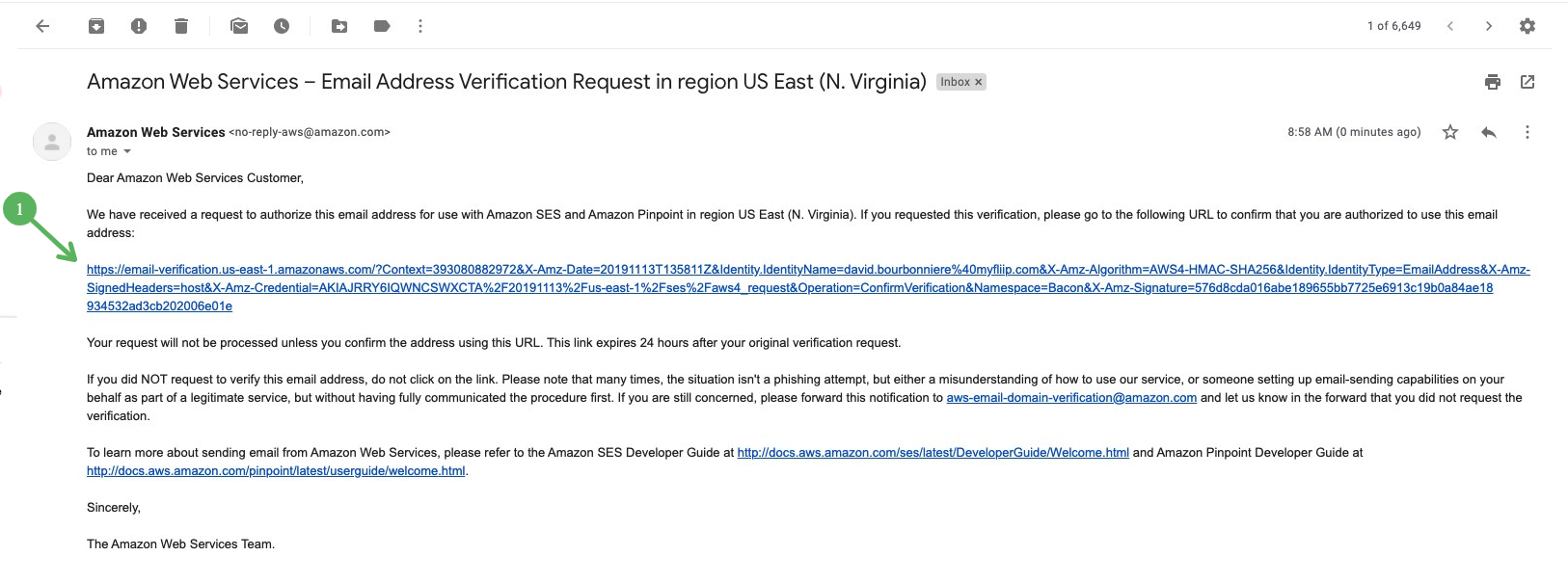 During the implementation stages, we ask you to approve an email received from Amazon SES.