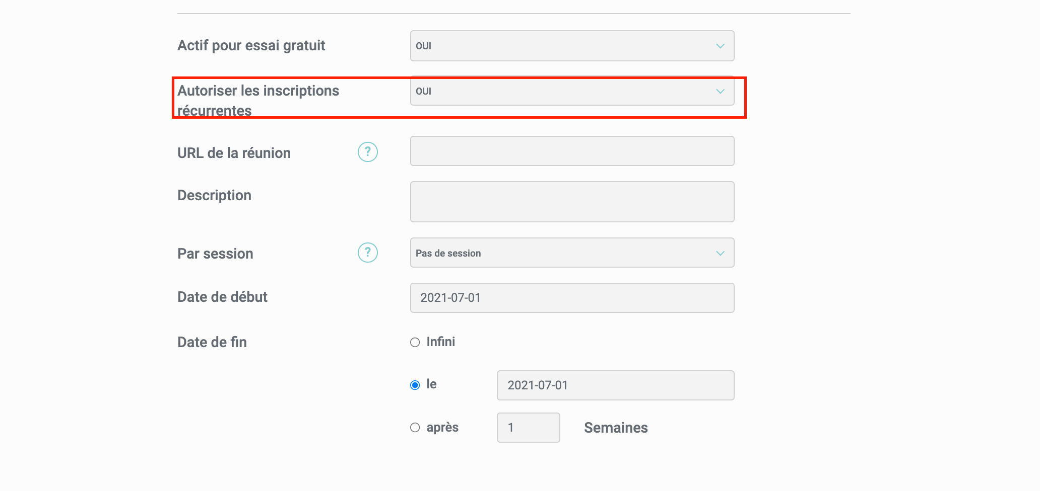 Vous trouverez ci-dessous toutes les informations nécessaires pour la création d'une récurrence d'enregistrement