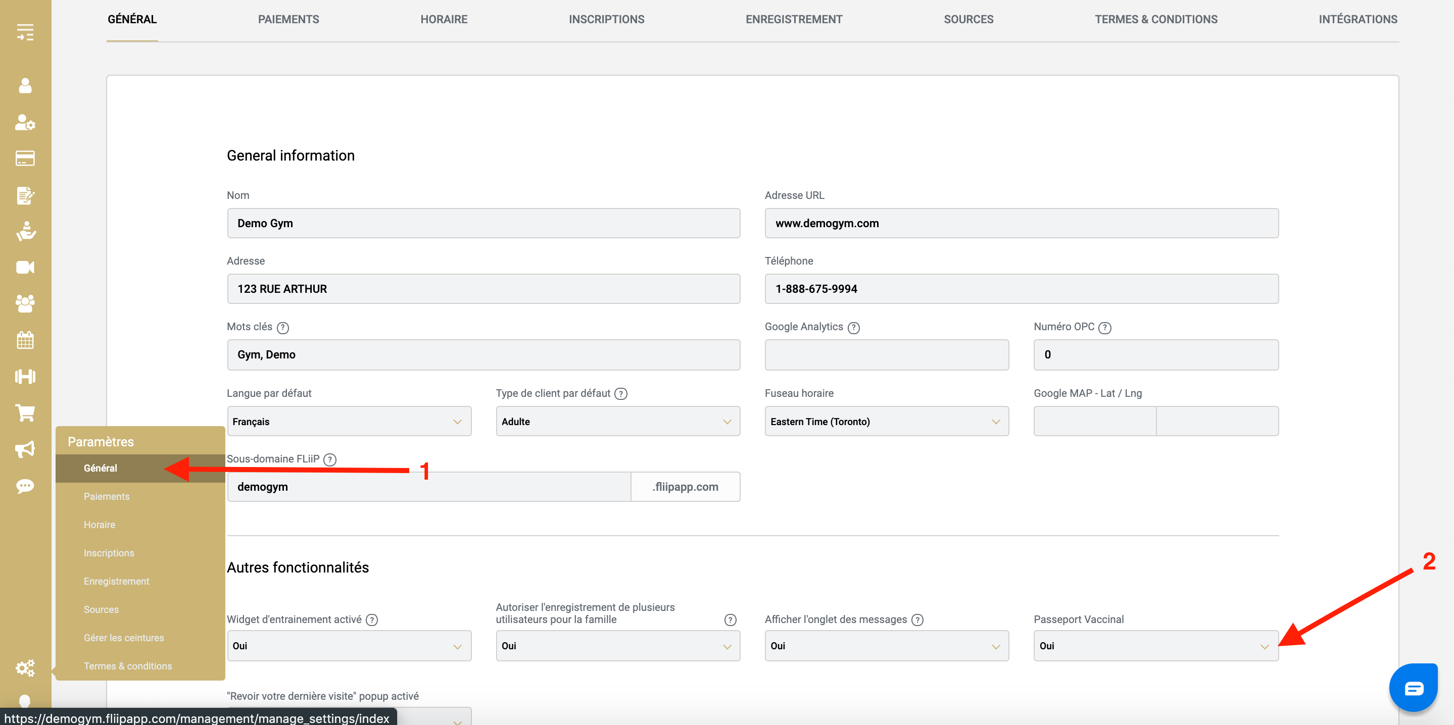 En activant cette option dans les paramètres généraux, il vous suffira simplement de faire la vérification que votre membre à bien reçut ses deux doses, et qu'il est bien en possession de son passeport vaccinal.