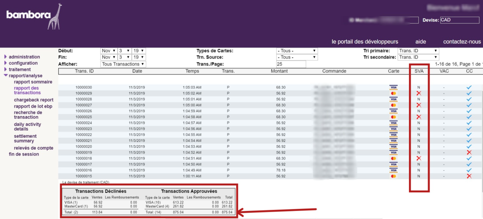 - Cliquez sur Rafraîchir dans le bas de la page et vous aurez accès à la liste complète des ventes ainsi qu'au statut de la transaction.