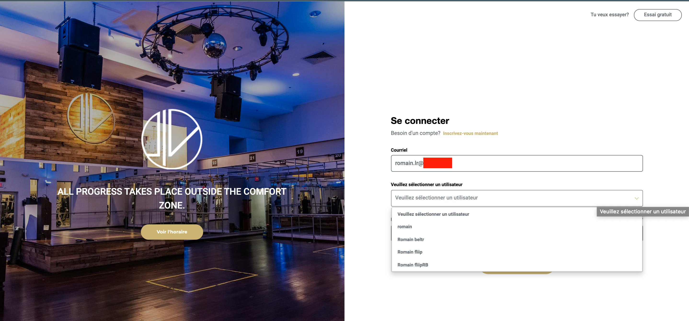 Exemple de connexion sur l'application :