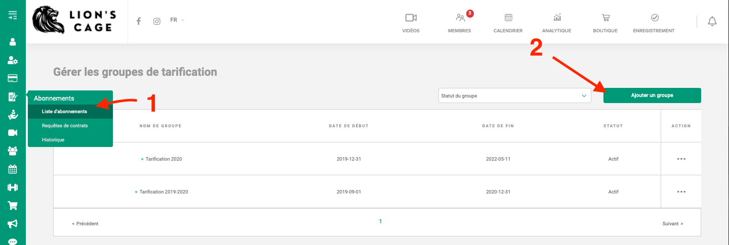 Lorsque vous allez dans l'onglet Liste d'abonnement à la gauche dans votre menu général, il y a un menu marqué comme groupe de tarification.